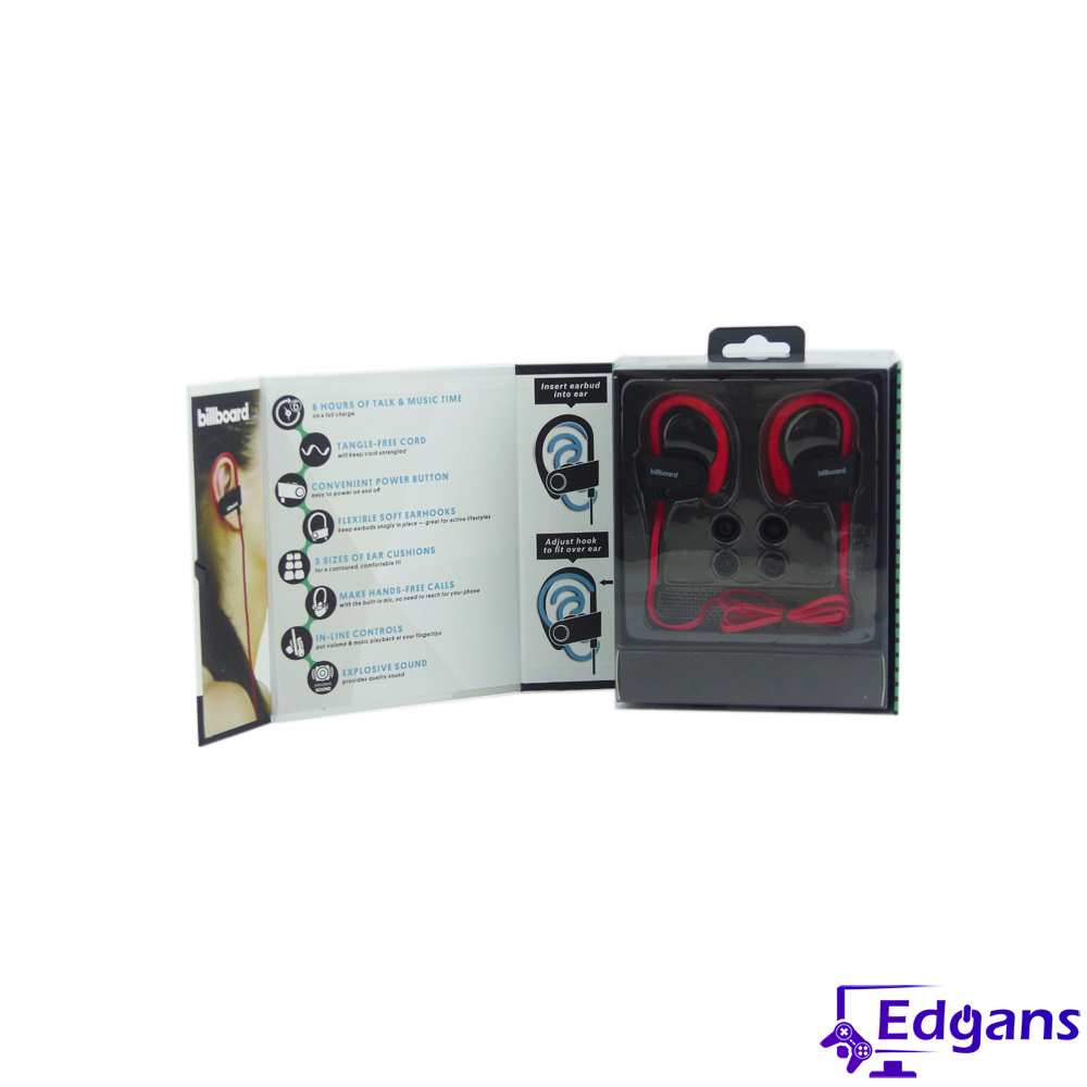 Audífono sport Bluetooth BILLBOARD con orejera. Modelo BB897. Audífonos con graves mejorados, aislamiento de ruido con micrófono para manos libres y alcance de 10 metros, ideal para hacer deporte escuchando tu música favorita.