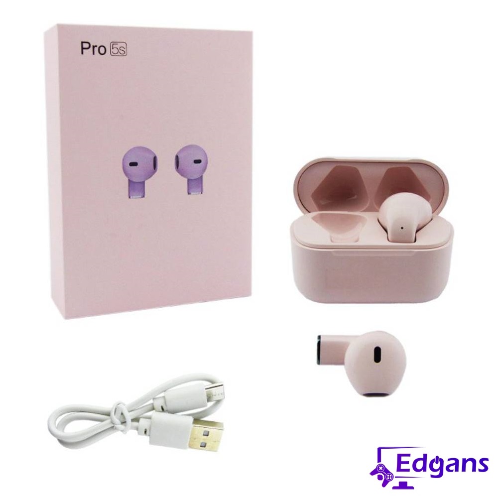 Audífonos true Wireless bluetooth con cargador magnético modelo Pro5S rosado ideales para contestar llamadas o escuchar música de forma inalámbrica. Incluye cable de carga y manual de usuario.