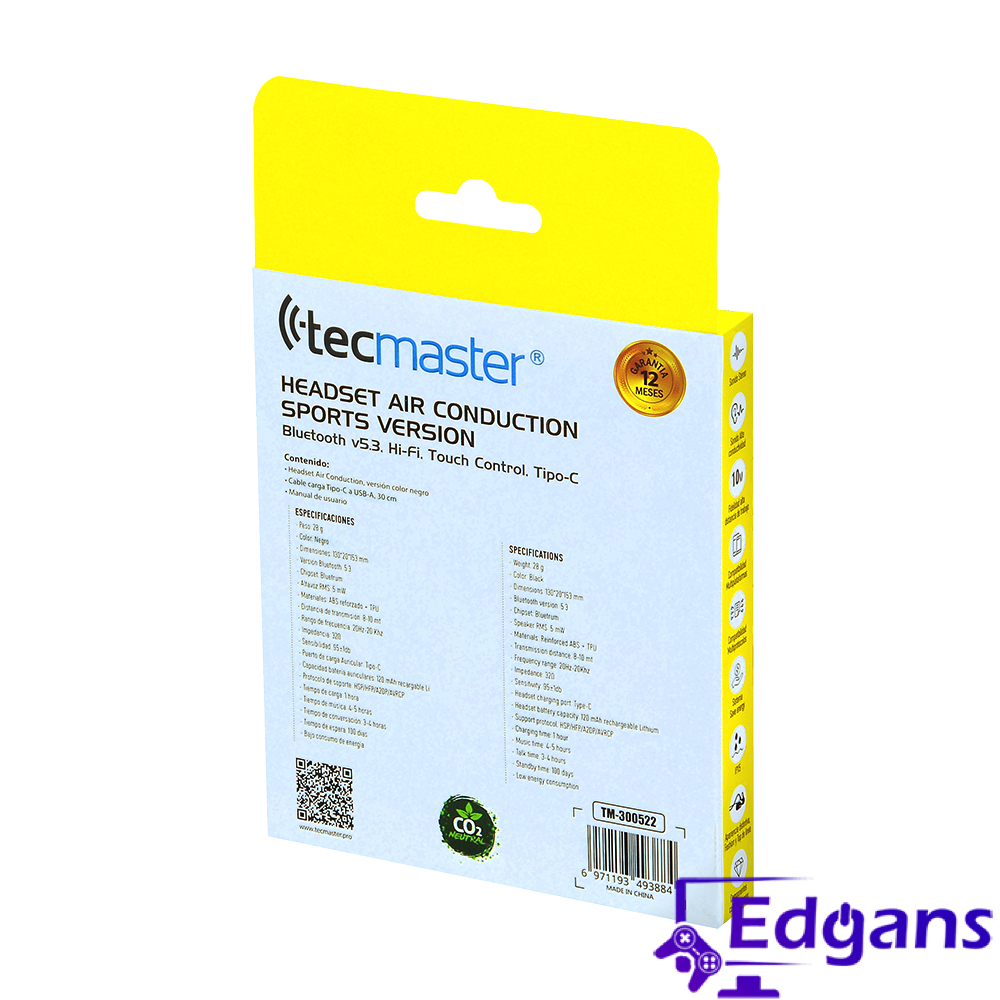 AUDIFONOS BLUETOOTH CONDUCCION OSEA SPORT V5.3, HI-FI TECMASTER
