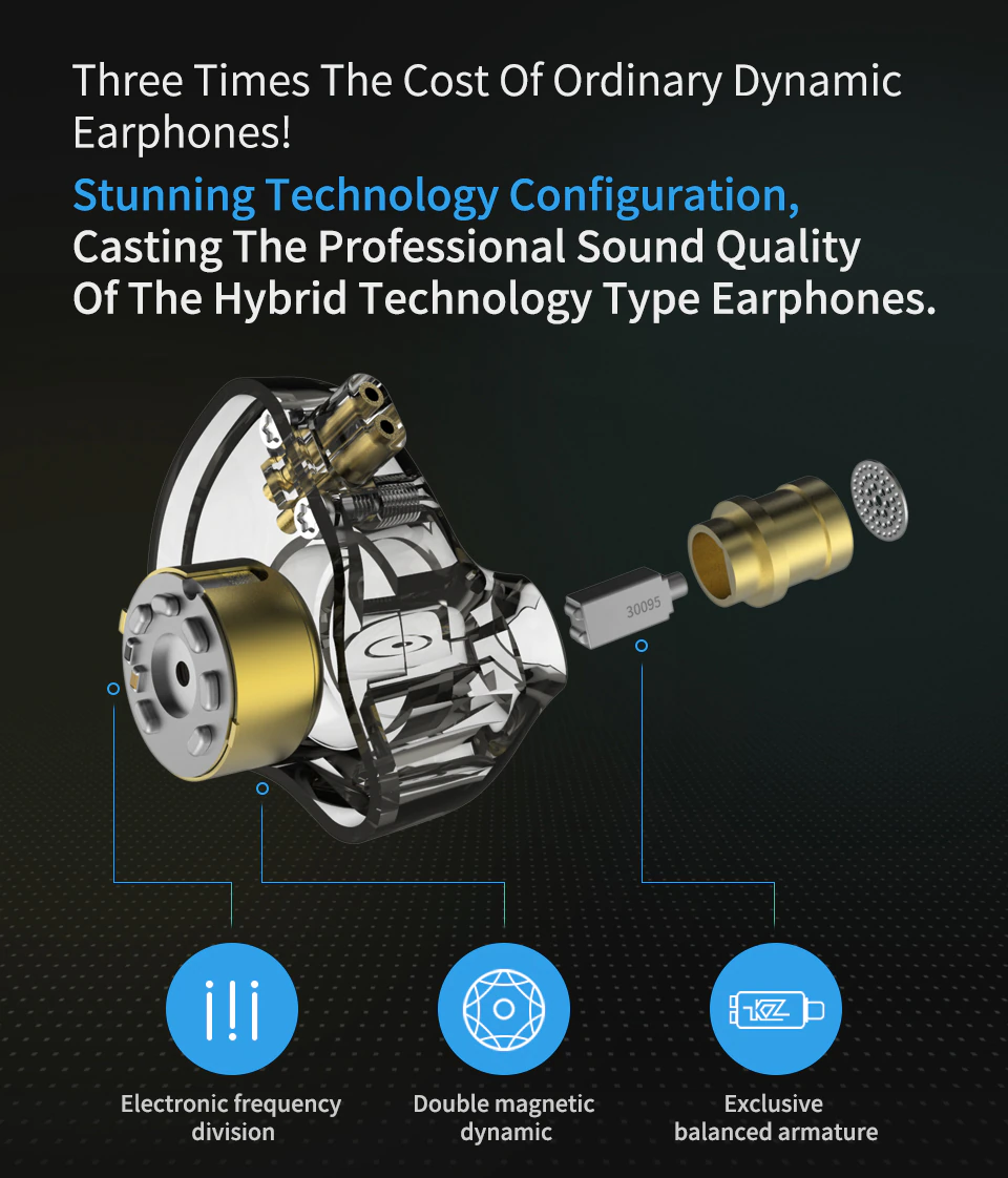 El kz zsn pro ofrece unos bajos más intensos gracias a su driver con doble circuito magnético. Con su gran construcción durable gracias. Un plástico mucho más duradero junto a su faceplate de metal, te ofrecerá una durabilidad mayor que los audífonos convencionales. Un audífono cálido, con una gran pegada de bajos, agudos más refinados y un tanto más brillantes que su antecesor (el kz zsn). La diferencia con el kz zsn, radica en que el kz zsn pro tiene más bajo (mayor pegada), los agudos más brillantes y definidos. El divisor de frecuencias hace que el driver dinámico de doble circuito se encargue de los bajos, mientras que la armadura balanceada se encargue de los medios y los altos.