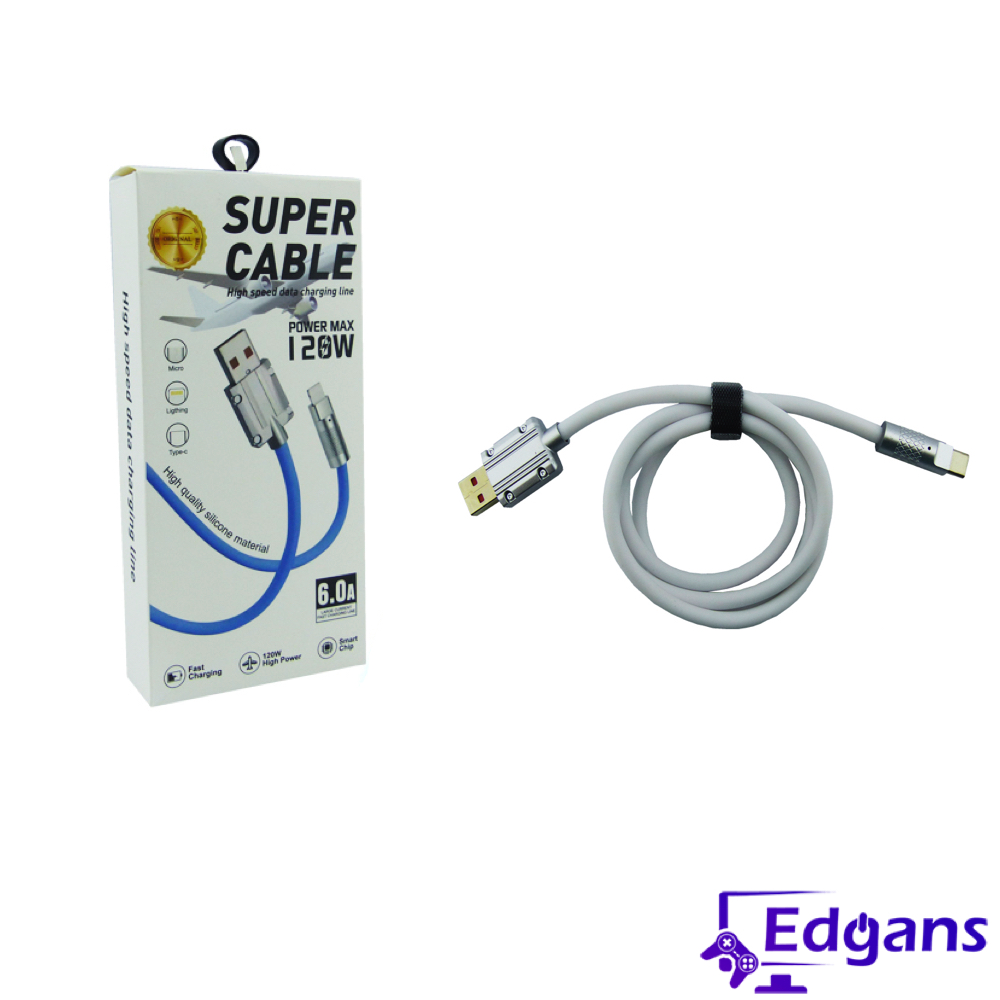 Cable USB a Type-C, es un cable de carga y transferencia de datos con punta de metal, potencia de 120W y capacidad de carga de 6A. Viene en dos colores, blanco y negro. Es una opción duradera y resistente para cargar dispositivos Type-C de manera rápida y eficiente, así como para transferir datos entre dispositivos y computadoras.