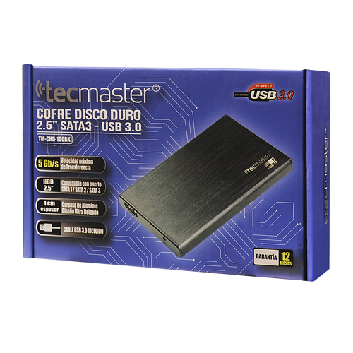 Dimensiones 122mm x 80mm x 10mm. Compatible con puerto USB 3.0/5Gbps. USB 2.0/480Mbps, para discos duros de hasta 2TB de capacidad y espesor 7mm hasta 9,5mm; HDD y SSD