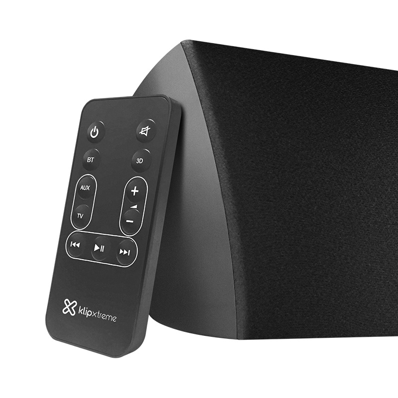 La impresionante barra de sonido de KlipXtreme revoluciona la forma de escuchar tu música. Este elegante y estilizado sistema estéreo, a pesar de ocupar el mínimo de espacio al estar integrado en una sola pieza, te permite disfrutar de la gama profunda de bajos a través de una conexión cableada y también inalámbrica. El sistema reproduce música proveniente de cualquier dispositivo Bluetooth® ubicado hasta 10 metros de distancia de la fuente de audio. La unidad dispone de una entrada RCA y otra auxiliar, destinadas a conectar dispositivos que no cuentan con la función Bluetooth®. La barra de sonido es capaz de ofrecer 120 watts de un audio espectacular, comparable con la fidelidad de las películas, ¡lo cual lo convierte en el componente esencial de tu sala de entretenimiento o sistema de cine en casa!