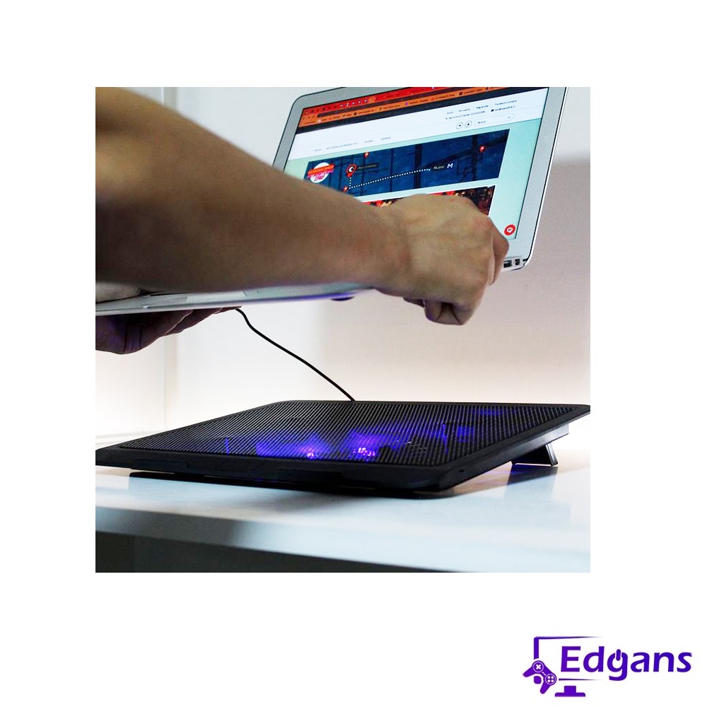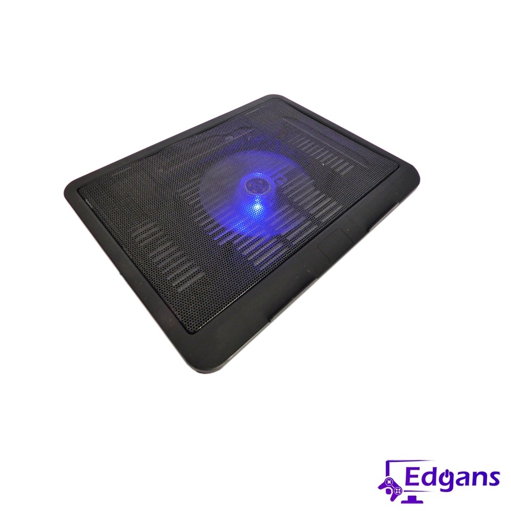 Ventilador notebook modelo V19. Con rejilla superior metálica, ideal para evitar calentamiento de tu notebook ya que esta base cuenta con ventilador alimentado por USB. Diseño cómodo y fácil de utilizar, dispone de una luz azul en el ventilador