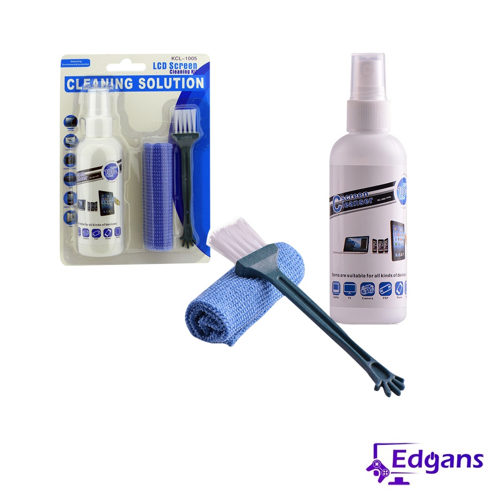 Limpia LCD 3 en 1 cleaning, para mantener una imagen limpia y libre de polvo. Este set limpia TV LCD / TV LED / PLASMA / pantallas de PC / notebook / Smartphone, etc. Producto eficaz para el mantenimiento de pantallas, Incluye: líquido antiséptico, pincel y paño.