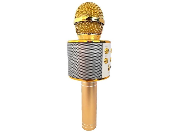 La pasión de la música al alcance de tu mano! Micrófono Karaoke Bluetooth con parlante incluido. Reproduce la música de tu dispositivo móvil con tu voz a través del micrófono y altavoz Tecnología Bluetooth 3.0 para un menor consumo de energía y transmite la velocidad de conexión más estable y más rápido Micrófono inalámbrico con efectos regulables (Agudos, Graves, Eco, Volumen) Altavoz de gran capacidad acústica con ajuste de volumen Controla la música desde el micrófono o del dispositivo (Pausa, avance, retroceso, reproducción) Puerto USB que permite la reproducción de archivos MP3 Acabado de aluminio y diseño atractivo Conector de carga Micro USB Accesorios incluidos: Cable USB a Micro USB, Cable Micro SUB a Jack 3.5mm, manual de instrucciones. – Alimentación: DC 5V. 1A – Potencia de salida: 2 x 3 W. – Diámetro del driver: 40mm. – Respuesta de frecuencia: 100Hz~10Khz – Relación señal/ruido: 85dB – Capacidad batería: 3,7V. 1200mAh – Tiempo de carga: 2 horas – Autonomía: 4,0 horas (Micro SD) – Autonomía: 2 Horas (Bluetooth) – Formato de audio compatible: MP3 – Distancia de transmisión: 10 metros – Peso: 390g – Dimensiones: 25 x 7 x 7cm.