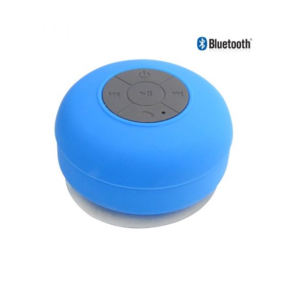 Parlante Bluetooth recargable y manos libres a prueba de agua, cuenta con alcance de 10 metros, función de contestar llamadas, su batería dura 6 horas de uso continuo Aprox. Incluye cable USB de carga, ideal para fijar en superficies lisas gracias a su ventosa.