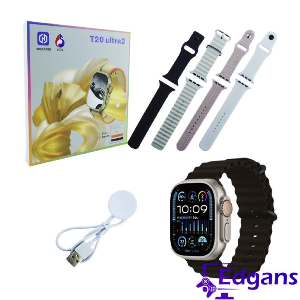 Smartwatch T20 ULTRA 2 kit combina estilo y funcionalidad con su pantalla de 2.03” y la capacidad de recibir notificaciones de redes sociales. Este kit incluye cuatro correas intercambiables, perfectas para adaptarse a cualquier ocasión.