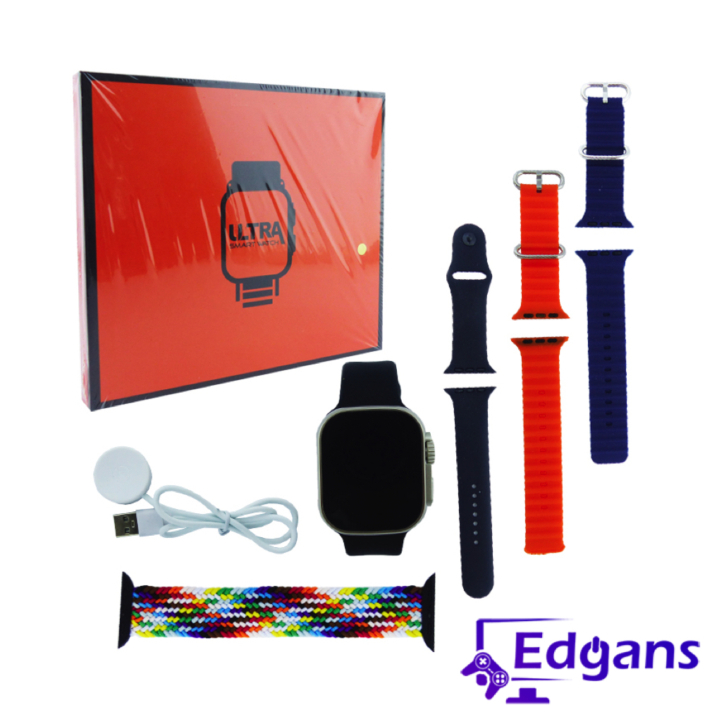Reloj smartwatch Kit Ultra con 4 correas intercambiables, diseñado para mantenerlo conectado y al tanto de sus notificaciones de WhatsApp y permitirle contestar llamadas directamente desde su muñeca. Este reloj inteligente combina estilo y funcionalidad.