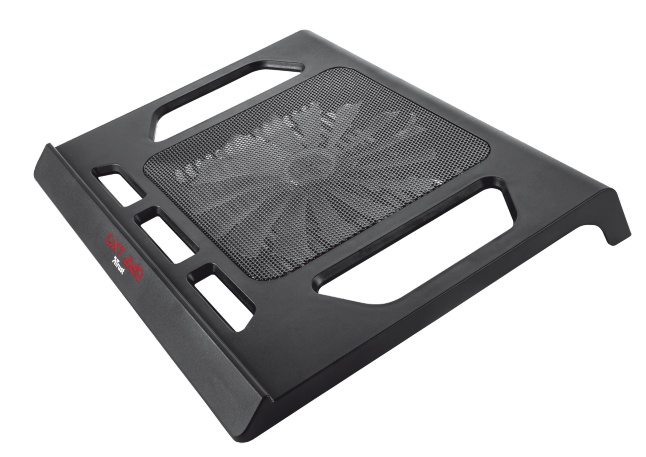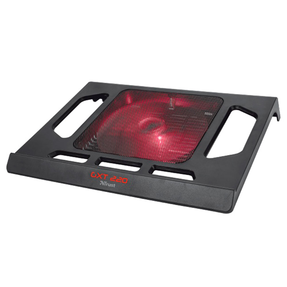 GXT 220 Notebook Cooling Stand. Soporte de refrigeración para ordenadores portátiles, para jugar a videojuegos, con un ventilador silencioso y muy grande iluminado en rojo.